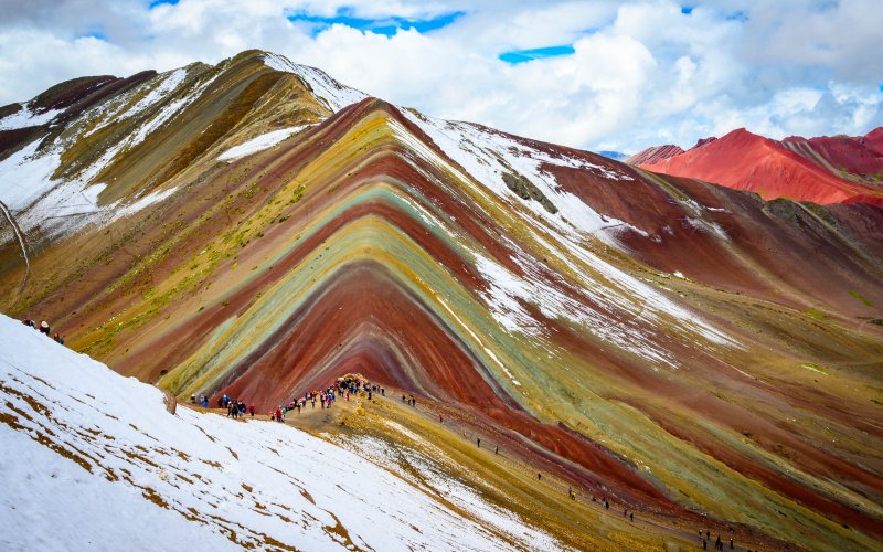 Machu Picchu y la Montaña de 7 Colores son dos atractivos distintos en Cusco, aunque a menudo se visitan juntos en tours de varios días. La Montaña de 7 Colores, también conocida como Vinicunca, es una maravilla natural a más de 5,200 msnm que se formó por diversos minerales y su coloración se debe a la presencia de óxidos de hierro y otros componentes geológicos.